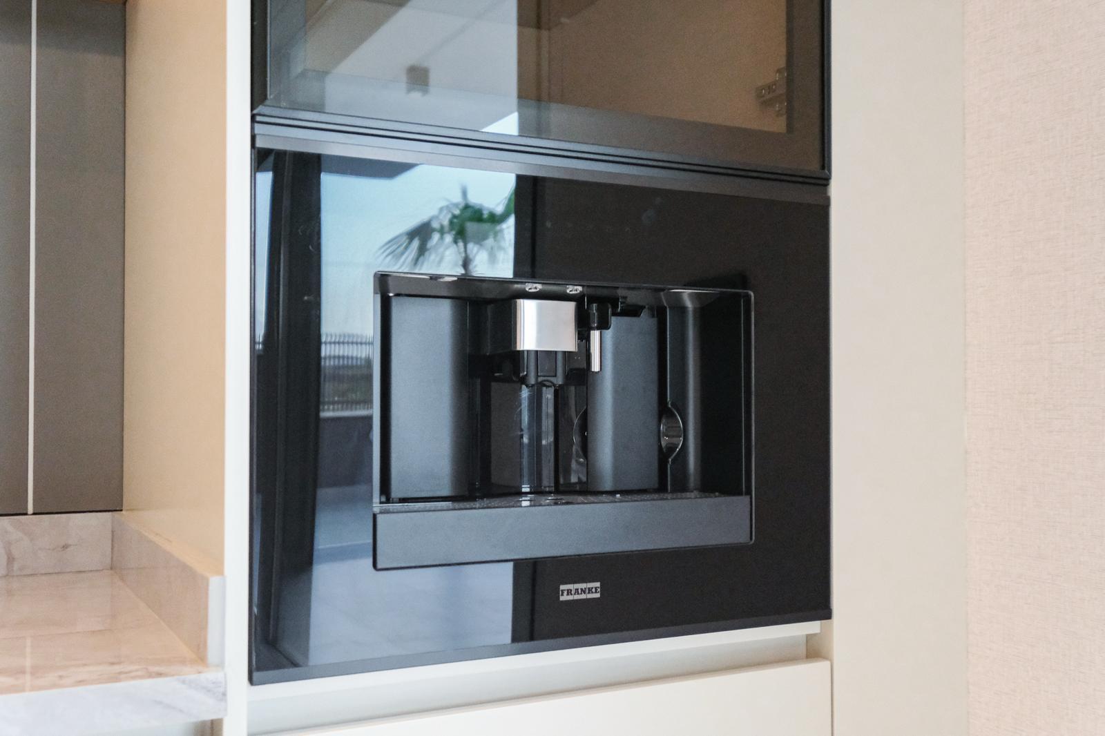 • Designer-Küche mit Franke & Electrolux Einbaugeräten, separatem Kaffee-Corner und edlen Porzellan-Arbeitsflächen